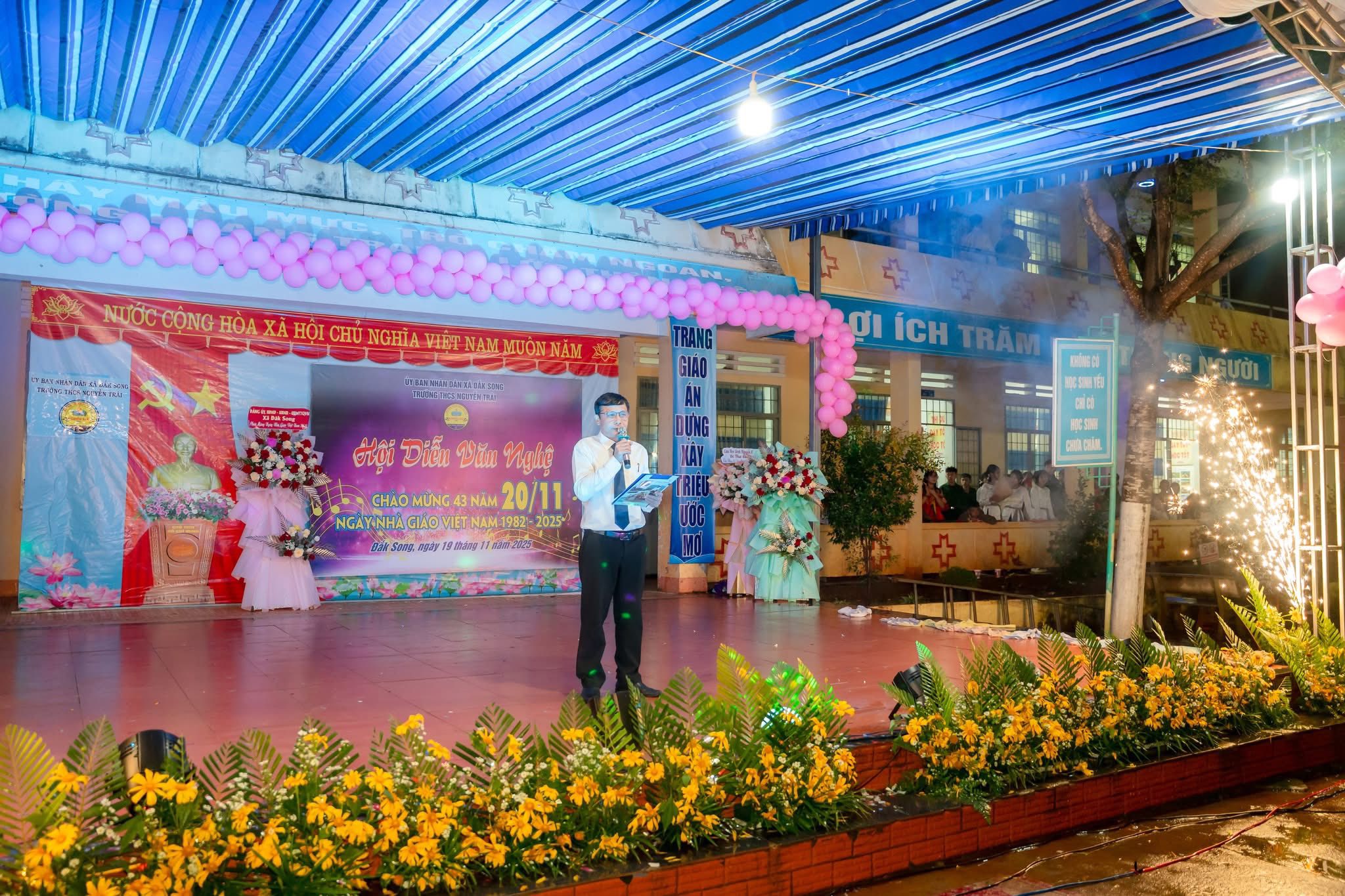 Hòa chung không khí tri ân thầy cô trên khắp cả nước, tối 19/11/2025, thầy và trò Trường THCS Nguyễn Trãi đã cùng nhau tạo nên một đêm văn nghệ đầy cảm xúc, rực rỡ sắc màu và đong đầy nghĩa tình.